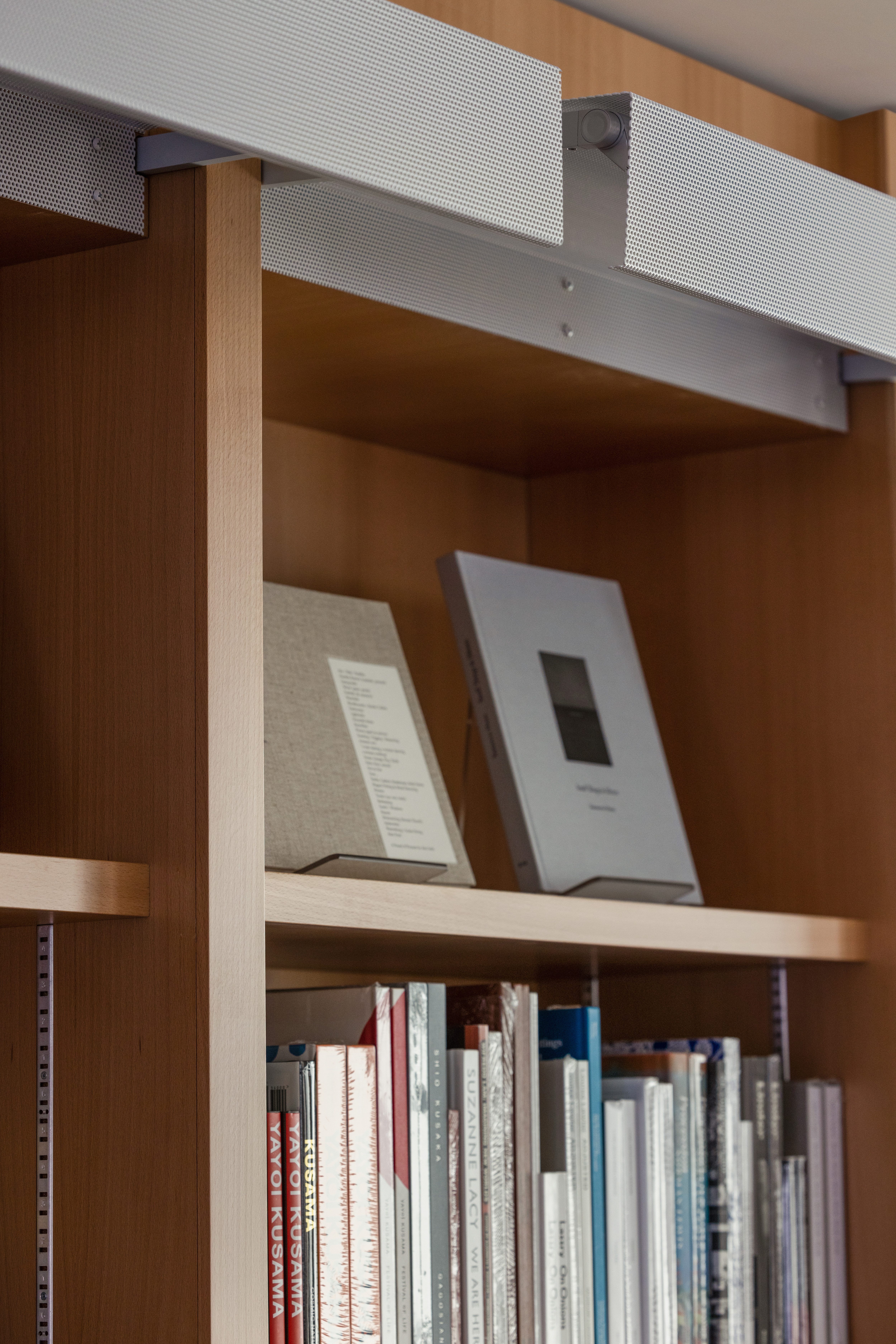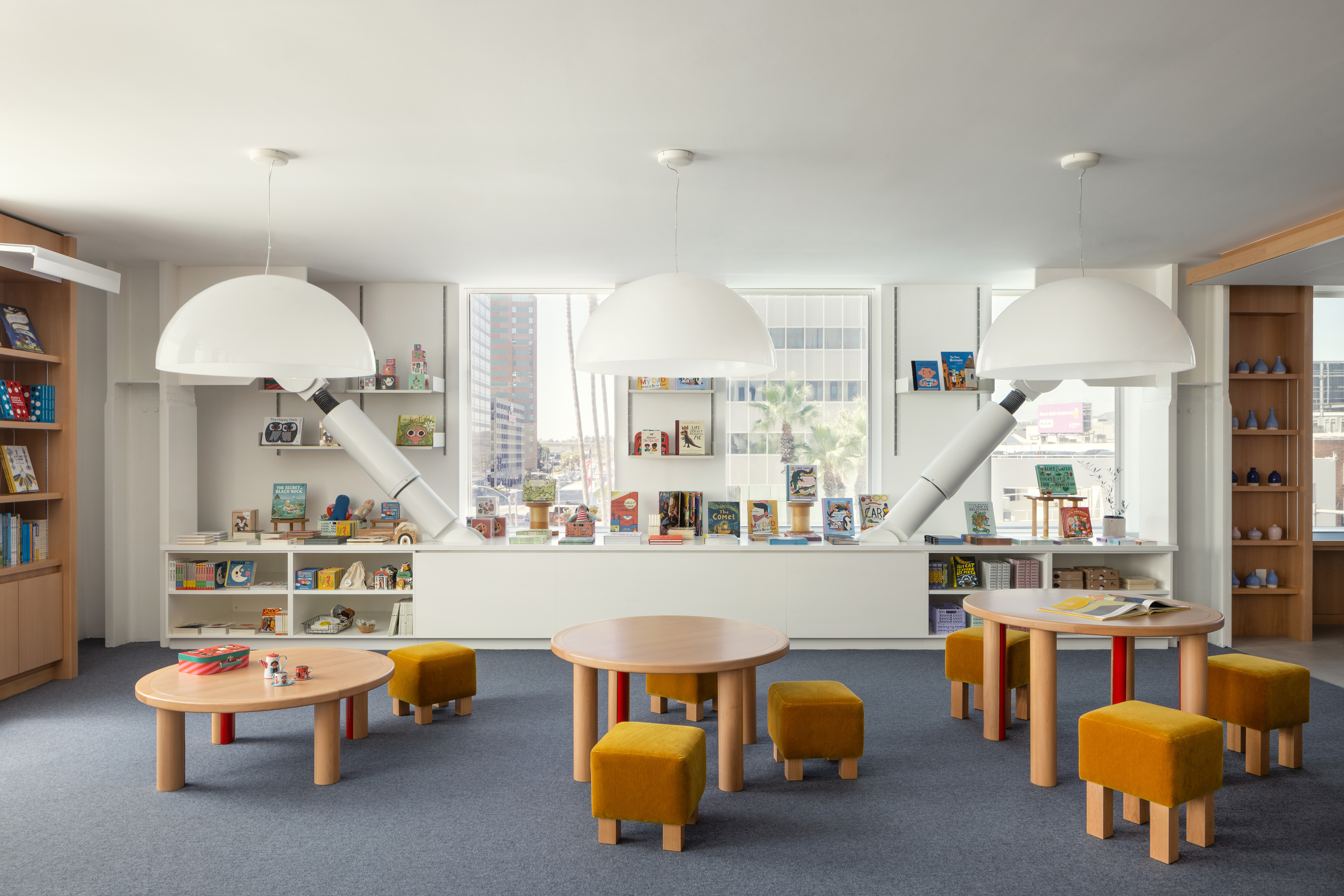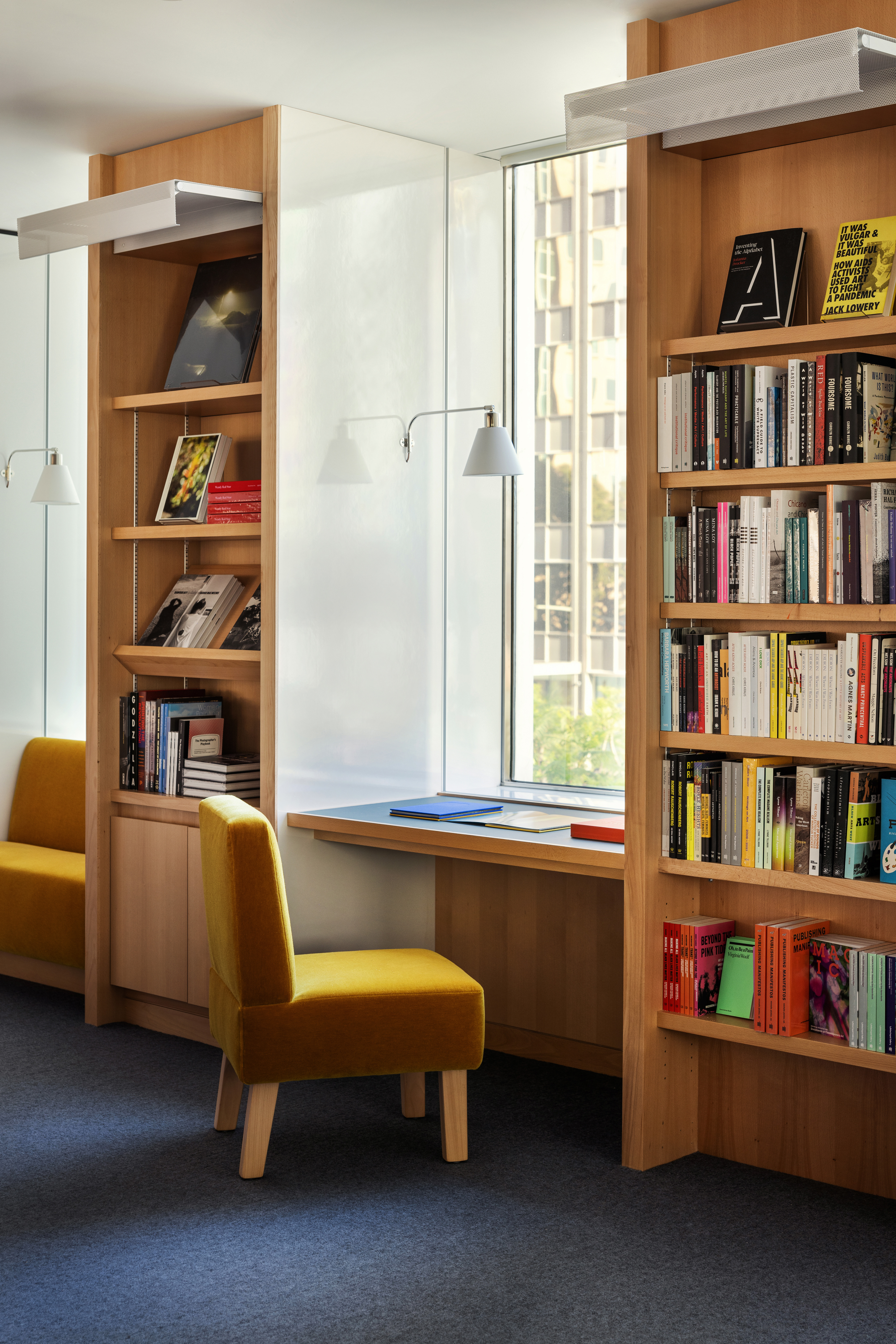 The welcoming new store feels more like a library or living room, where visitors are encouraged to linger, grab a book and make themselves at home. The Archers team, alternated flexible merchandise bays with upholstered window seats and study carrels with pull-up chairs. Working closely with the museum director and bookstore staff, we designed a custom table system, with interchangeable, modular units that provide endless permutations for merchandise display. There is also a designated children’s area with tables of varied heights to engage youth of all ages and sizes, and a highly-flexible Pop-Up space that serves as a white-box gallery within the store, with adaptable lighting and display systems for a roster of rotating curators and special exhibitions.